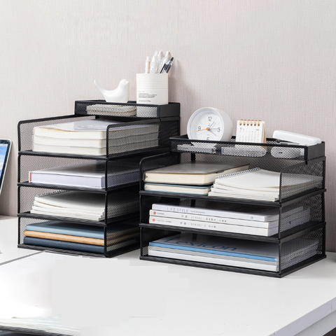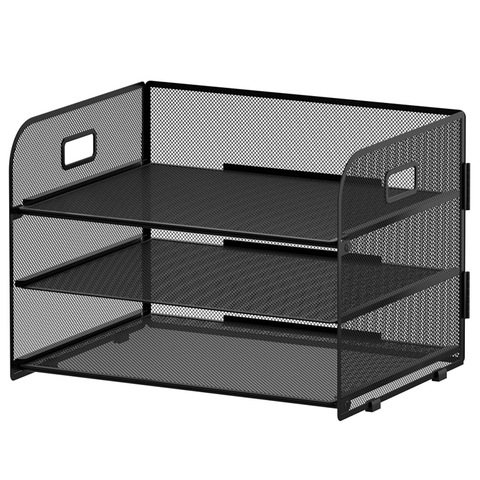 ชั้น3/4ชั้นวางเอกสารบนโต๊ะที่ใส่กระดาษที่ทำจากโลหะเหล็กที่จัดเก็บไฟล์ตาข่ายสำหรับสำนักงานและที่บ้าน