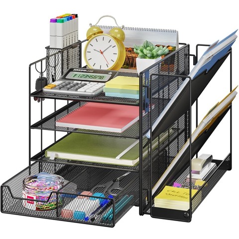 อุปกรณ์จัดระเบียบโต๊ะ4ชั้นพร้อมที่ใส่เอกสารถาดกระดาษจดหมายอุปกรณ์จัดระเบียบพร้อมลิ้นชักและที่ใส่ปากกา
