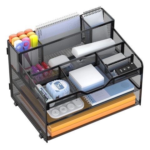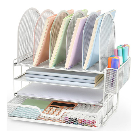ที่ใส่แฟ้มตาข่าย5ลิ้นชักแนวตั้งอุปกรณ์สำหรับโต๊ะทำงานพร้อมที่ใส่ปากกาที่จัดระเบียบโต๊ะ